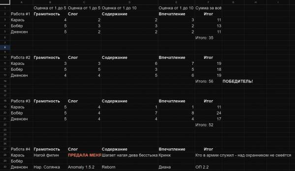 Пока в ТС происходит заруба не на жизнь, а на смерть, наши властелины пера сдали свои работы. "Ну надо же, и даже вовремя" - подумаете вы. Не совсем, но об этом позже. А пока приступим.