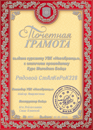 Почетная грамота и ведомость.